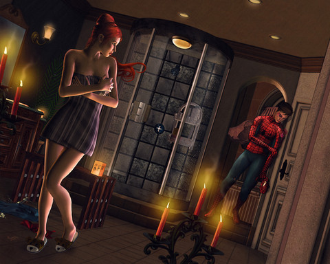 This is an amazing image. I love the idea behind it, though I'm sure it wouldn't work if you had to talk to a women for all that time lol. Great detail, especialy on the back of the man with the wires and stitches, and the greens and reds look great. Also the can and things on the desk gives it a small sence of nomality which I like. I'm sure she would have loved it as a gift, though candlesticks sound just as good. Realy good work, nice job man.