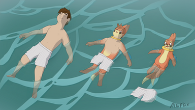 My friend Leety spending some time at the pool before it gets to cold out, suddenly he is a samurott!