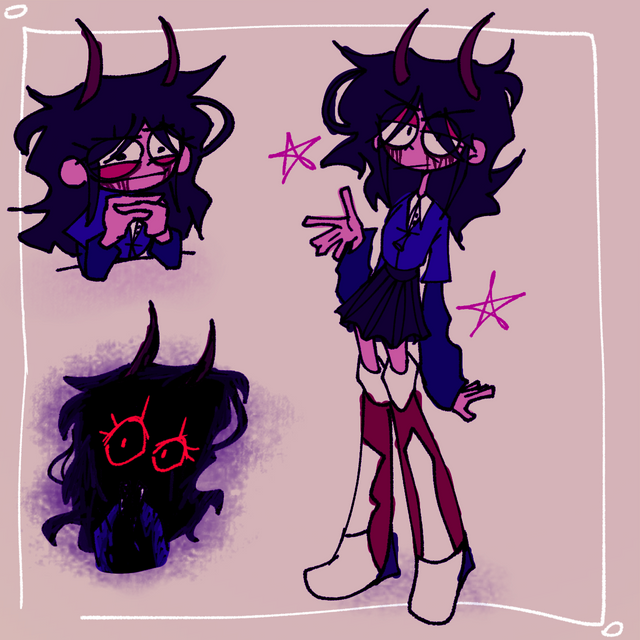 Just wanted to draw more of Ophelia but also wanted to have a final design for another character in this series. Their name is Max and they pretty much act like a rebellious teenager lol-Additional doodles include scribble and demon clown joke