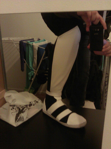 I got the ribbons for Aelita's legs. I have to wear pink socks though since there wasn't enough ribbon to wrap around my feet. I was going to use the ribbon for the pink parts of the arm bands, but no more ribbon, soooo xD I gotta find another way to do that.Related content