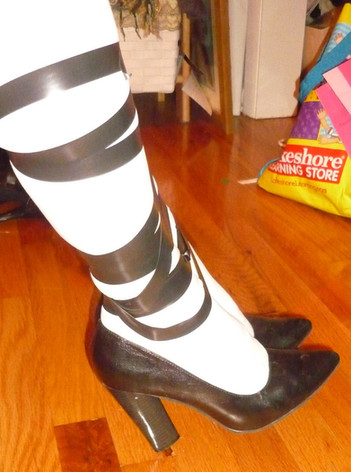 Well if you read the artist description you'd know that I didn't have enough ribbon to cover my feet. And pretty much all animes when they wear socks you can't see their toes, so thats impossible for me to not show my toes when I'm wearing socks. Even if I had ribbon over my toes you would still be able to see the shape of my toes. Even if I wore ballet shoes that would make it look more like ribbon you'd see my toes.