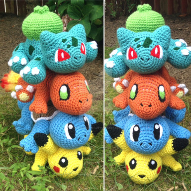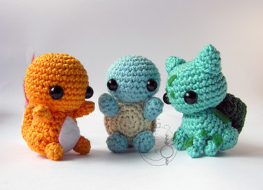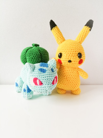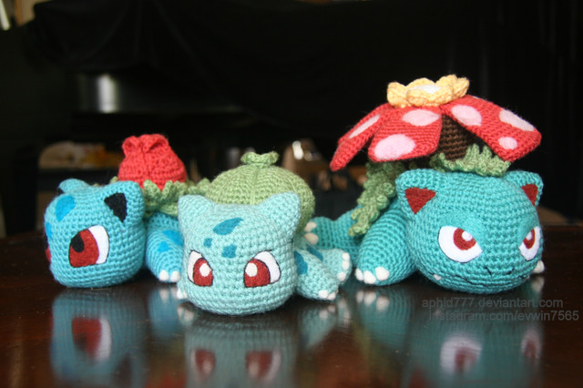 Bulbasaur, Ivysaur, and Venusaur are the property of Nintendo and these were made upon request and only labor, materials, redesign into amigurumi, and shipping will be paid for. No infringement is intended since it's fanmade for a fan who requested it and will never be mass produced. (There may be a large amount made if and only if the customer orders a large amount.)