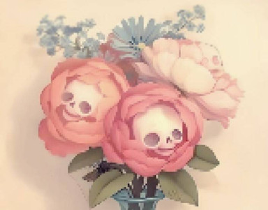 I agree with janedean, everything about this is just wonderful - the background, the tombstones and the calavera.