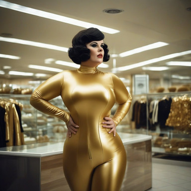 Laura, a former 100 meter sprint champion, found her day job as an accountant to be drab and boring. Lusting for excitement, she created an alter ego in the evenings by fashioning a tight cheetah inspired costume out of her 'bedtime' latex wear... With her athleticism and her new costumed identity she runs around town committing petty little thefts while turning on her charm and flaunting her sex appealing figure to authorities and pedestrians who happen to catch sight of her! (pictured is Laura at an older age, retired from racing through the streets- but not from racing men's heartbeats!)