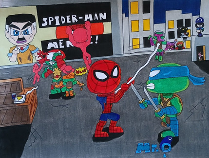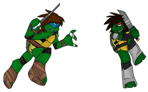 This idea was too Bruce to pass up when I had it. (and really, I'm surprised that not a lot of TMNT/RC9GN art exists)So... how would these two come to trade blows? Well... I had a much longer story in mind... but I lost it due to some errors... so here's a shorter version (Assuming that the Turtles would end up in Norrsiville, somehow)