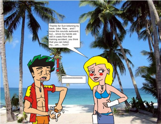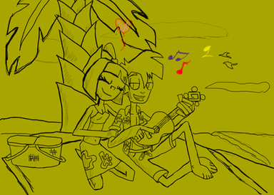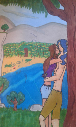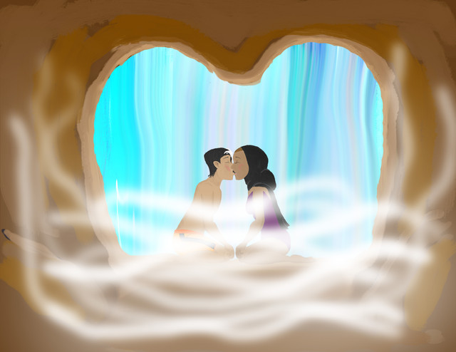 This is just me experimenting with styles, my pen-tablet, and catching up for a long lack of submitting artwork. I actually did this one freehand entirely on the tablet... no scanned drawings or anything.The idea behind this piece is basically Zak and Wadi kissing behind a waterfall during a day of fun... and that is all... only this time more visible