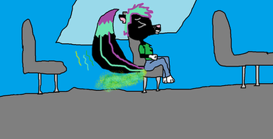 I've been on a bit of a Mephie kick lately. Sometimes when Mephie and I go for a drive, we stink up the car to entertain ourselves. No regrets!The steering wheel is suppposed to be attatched to where it normally would be on a car, but I wasn't really sure how to make that work with the way I drew this(the perspective, where everything resides spacially, etc).