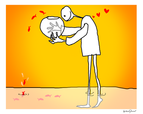 Is it their reflection in the water the musicians? Or are they the real ones making the music? Sometimes life can be both and we don't know what is real and what isn't.