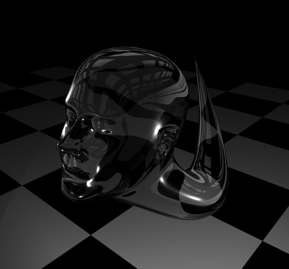 nice render man. looks like someone spilt mercury on the floor...very cool. but yeah, the checkered floor could be changed to something different imo. looks nonetheless