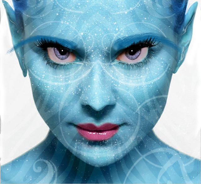 I really like that warped sort of texture that is across the face, but I would probably avoid it on the right side of her left eye (from our orientation) as it looks like clumped up mascara or something there.