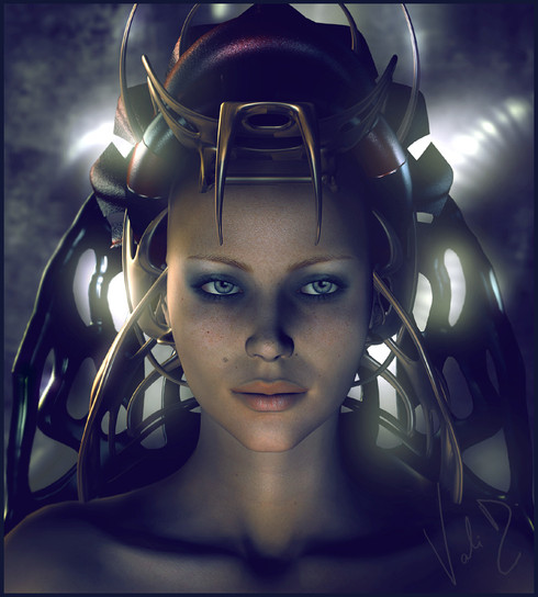Cough, crome filter wah' !? Not in mah house. teehee. I really like this, and I usally frown on filter use with Adobe Photoshop v6.0....but....I think you actually pulled this off in a new direction, a good direction. I love how the crome seems to flow out of her eyes, and down her face. You are getting good with blending, and airbrush is always a phun' thing, start producing more !! more I command you !