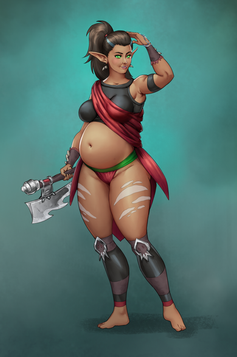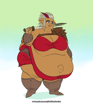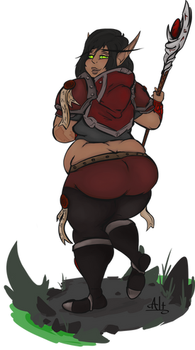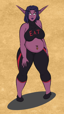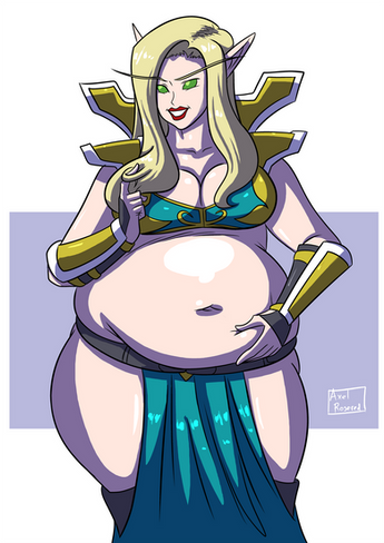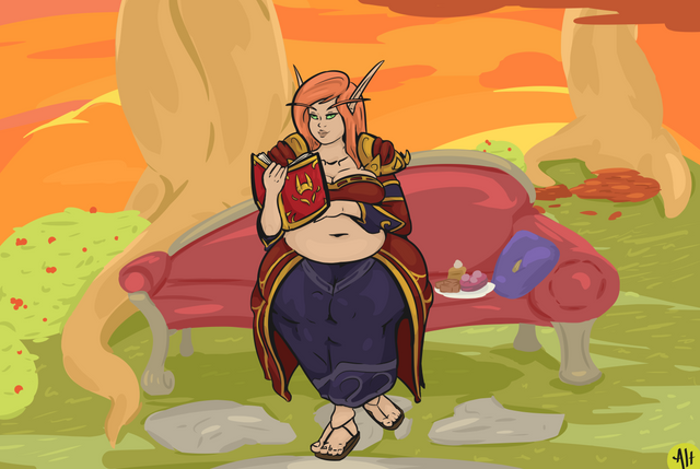 Comm for a friend. His blood elf struggling with her recent retirement gains.I love her design, and I had a lot of fun with the colors and background for this.