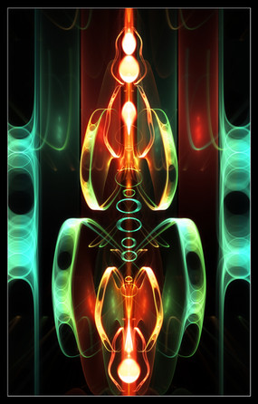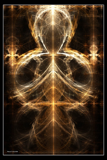 I have an alternate colored version of this piece; which I'll upload later on.Comments welcome. Want better details? Full view it! Made with Apophysis v.2.08 Beta II. Border and text done in Adobe Illustrator 9.