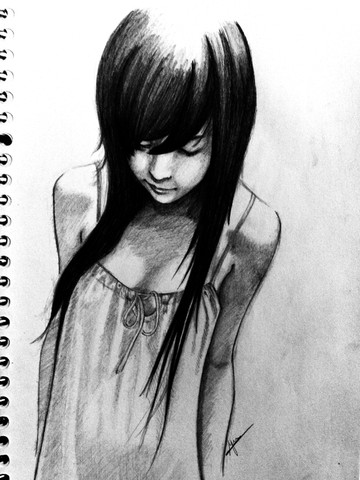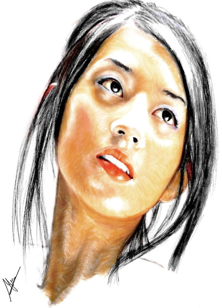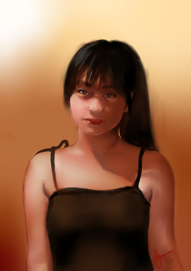 wow, shes so pretty! I like the way you did the shine in her hair, and i love her eyes!