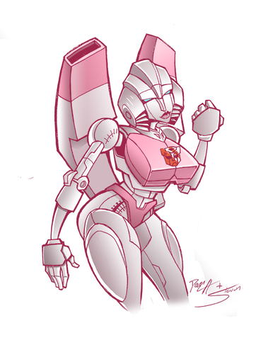Remembers me of an Arcee drawing I saw a few years ago at a Botcon ^^