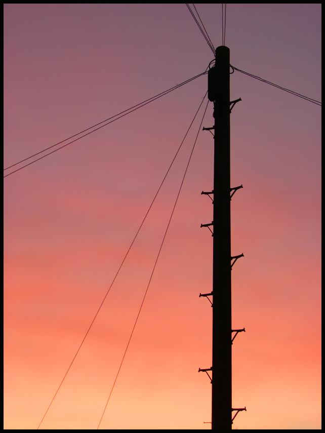 it is very difficult to take a picture of a sunset/sky that is unique. the composition is wonderful as is the mix of nature (sky) with industry (pole and wires). great job.