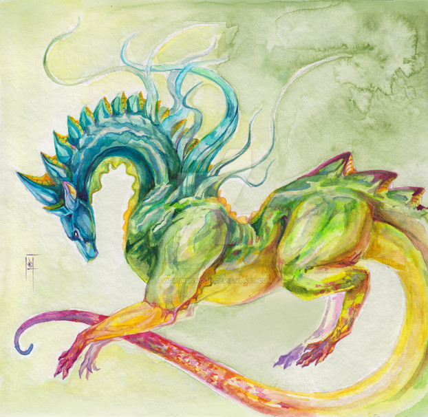 A long way to summer^^I did it without any lineart, just watercolors and pens. I took a photo to show the colors, that my hungry old scanner always eat. +Some tools of my art: watercolors, a brush and two pens. And small cute dragon, he helps me a lot^^
