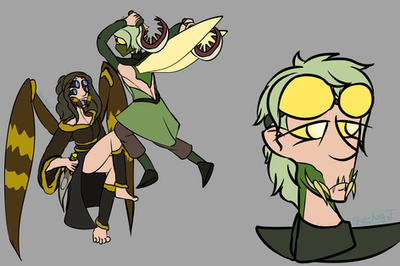 (( ummm.....what?....okay first, the first pic i did of nics dad when he was younger. i was just screwin around, i might change it now,. i don't know. and his army is huge, tecnocligy wise, they don't got like the highest thing of tec, they are just increadibly well trained, they are great fighters and can do many different things, not only weapons exsperts but also hand to hand and so on. there is also different possitions and different other kind of wasps (might do a whole chart thing at some point). Also, if hornet had it his way, h would still be concuring the land of Ooo, however in a bee sociaty, the women is the one in charge, so though hornet seems to be the ruler, its really bumble who gets the last say.
