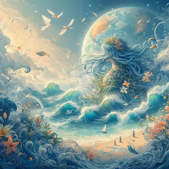 #beauty #surreal #digitalart #floral #portrait #magic #sea #plants #characterdesign #rainbow