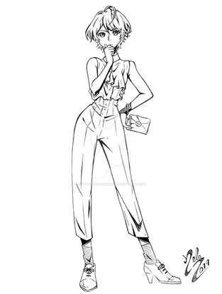 used a water color painting with the screen tone/ sharpie it required some digital editing. Unfortunately, this drawing had to be cropped severely. But ye "freshman year Alison" had a whole outfit designed and I only got to draw it here >