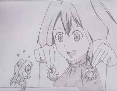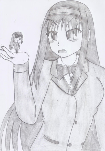 Commission for . He asked me to draw a giant Ritsu holding a tiny Ms. Sawako. Poor thing.I'm happy with Ritsu's face but not so much with her body. Need to work on anatomy. T_T