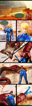 Now the tounge and tenticles had wrapped themselves around Samus's upper body and neck. Knowing she was beaten and what horrible fate awaited her she began to beg Chang for help.