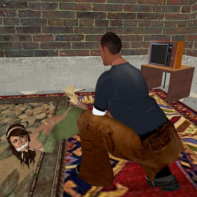 Alyx was discusted with her captor's actions and could only frown and grunt into her gag as she looked Becca in the face for the first time.