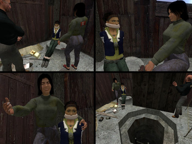 Alyx walked into the room and almost gagged on the smell, but what she saw made her feel alot worse.At the other end of the room a pile of corpses were rotting, the floor covered in blood and pieces of limbs torn off and...half eaten.