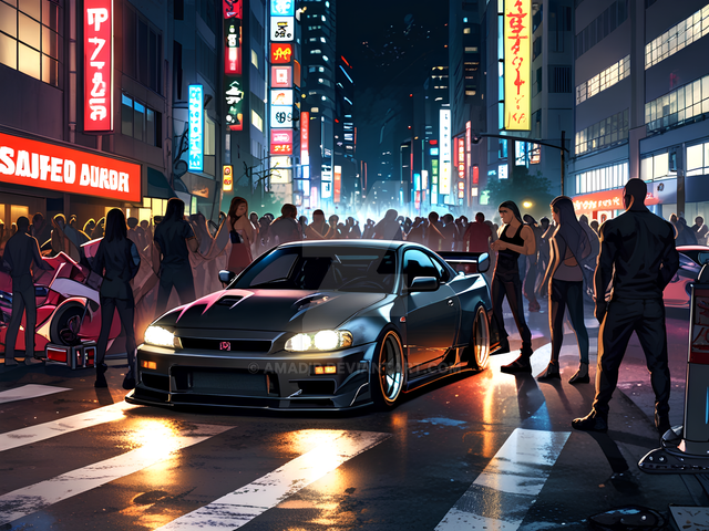 #car #vehicle #digitalart #wallpaper #cyberpunk #neon #cityscape #beauty #characterillustration #conceptart #description #drama #epic #motorsport #naturallight #originalcharacter #portrait #racing #amadir
