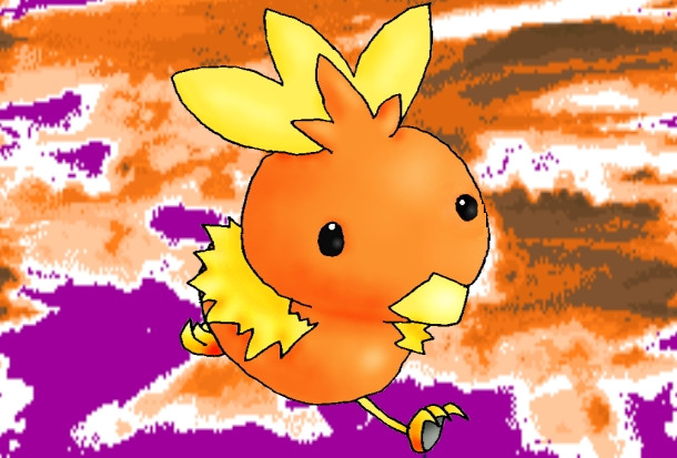 I hope ya don't mind if I draw more pokemonsI have tried to make the background with some lava, I hope it works. Torchic is a fire-type so I guess this background was good enough for it, I think