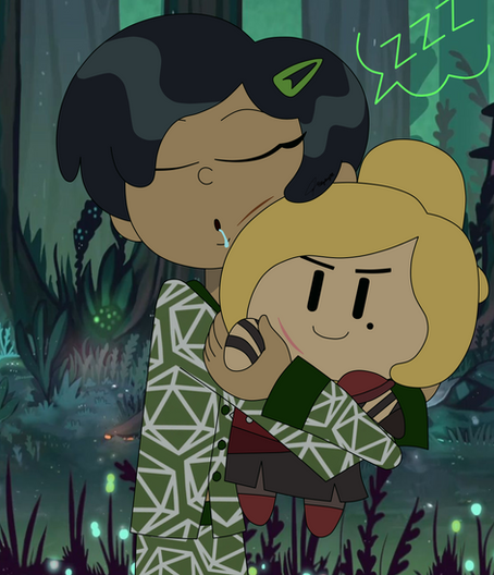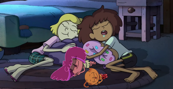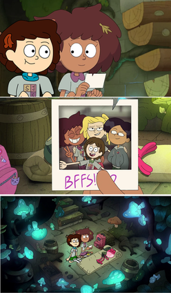 Anna manages to defeat the monster with her harsh words of criticism, saving her friends in the process. It causes the creature to explode, leaving a giant mess as they recover from their "rescue." Along with the old man, who is off to see his family. Chye is saved alongside her other friends! They have a nice group hug, ignoring the fact that the creature exploded into pieces with boba bubbles. And that Molly just ate one to find out what it was. Twig joins the group afterwards, wanting to go to a new burger place on the haunted side of town. Because they are all teenagers, the kids do want to try the place out. Ah well! They'll learn eventually! All the kids are saved and that marks the end of Anne's story for The Shut-In.