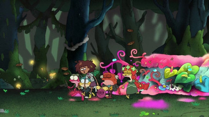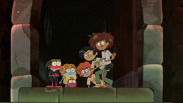 While planting the pheromone-releasing mushrooms with the rest of the group for Marcy's plan, Hershel notices something strange-looking on the Golden Charm. Skye doubts her flute is breaking, recognizing that it is old and it is most likely the old Amphibian language. Her family's time spent in the wild has lead some of the old language to be passed down but eventually they adapted to the new language, hence why Skye knows a little about the old language. The marks may be the name of the creator of the flute, from 1000 years ago. Soon Marcy's plan will begin and they'll be able to get out of the cave and figure out what the strange etches on the flute. ...Until...