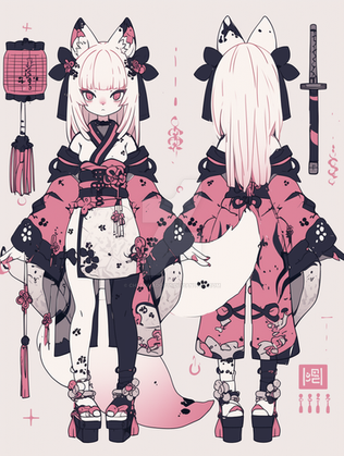 #adopt #adoptable #adoptables #adopts #cat #characterconcept #characterdesign #charactersheet #fox #girl #pink #referencesheet #white #whitehair #aiadoptable #vtuber #aiadopt