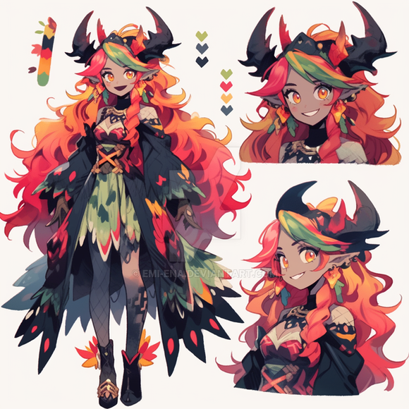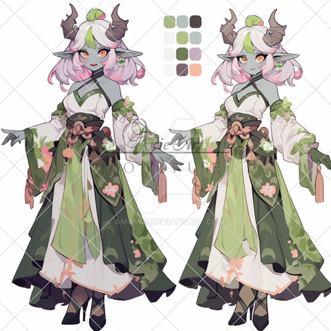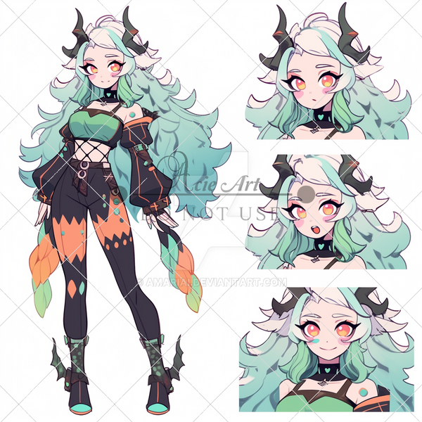 #adopt #adoptable #adoptables #adopts #characterconcept #characterdesign #charactersheet #green #horns #orange #referencesheet #aiadoptable #vtuber #aiadopt