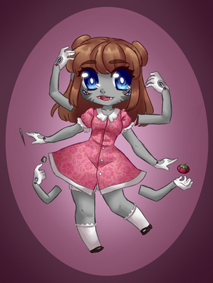 An adorable spider girl design. I've always liked humanoid spider designs so I wanted to try my hand at drawing multiple arms on a person. I was going to do multiple eyes too, but they looked strange to me.Adoptable for 900 points.