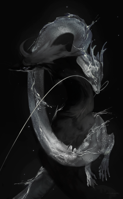 Naughty us, peaking behind the bathroom curtain at a dragon taking a shower