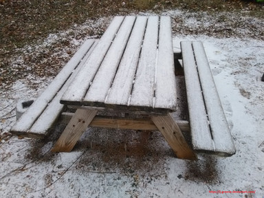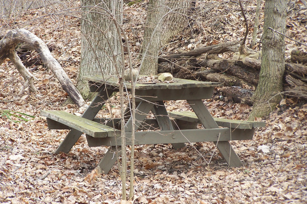 A picnic table back in the woods.Related content