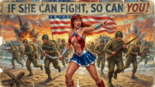 What if we went back to the early days of Stormy Tempest’s career, before she became an outlaw, to a time when she was still a space cop? We wouldn’t have to put her in an actual Stormy Tempest costume. We could maybe just put her in blue jeans and give her a white t-shirt and maybe find a way to put a big red star on it. Not many people knew who Stormy was any way at that time, not even most FemForce fans, so maybe no one would care too much about the accuracy of the costume. She was almost a blank slate, but with lots of potential.