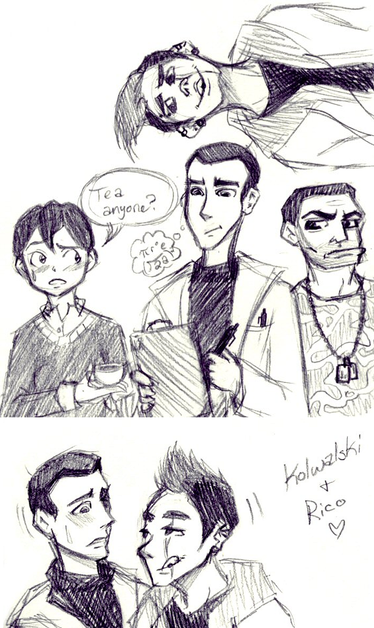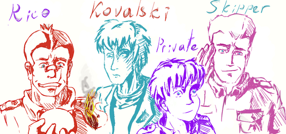 It's my the first attempt to draw penguins... as penguins. And, I hope, the last. ΠΎ0 Oh, God...So, what can I say? Don't be scared by my Rico... and by Kowa too... Please)) You know, in my interpritation, Rico is a crazy man. No, really, I think he is seriously ill. Mentally ill man. And I tried to give him some kind of manic way. It seems like I overdid it a bit x)