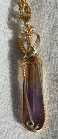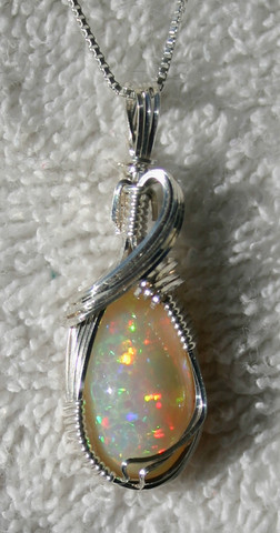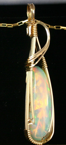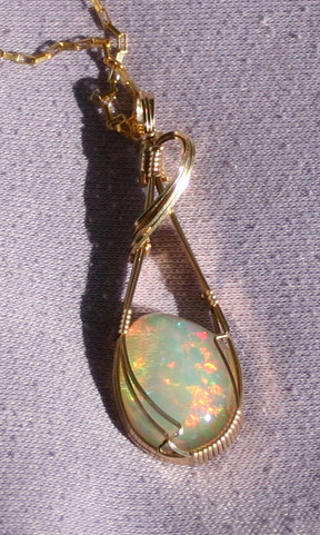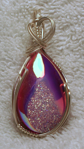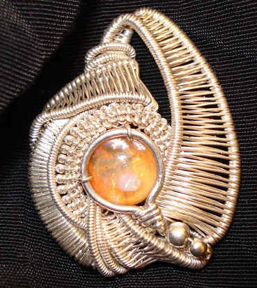 No, I have not abandoned wire work - not by any means. This is one of those pieces to show that yes, I've been busy.This piece is a "sunset topaz," a white topaz that has been cut using curved facets to make the colors even deeper and wilder. This stone is, well, big. Very big. But I love it.