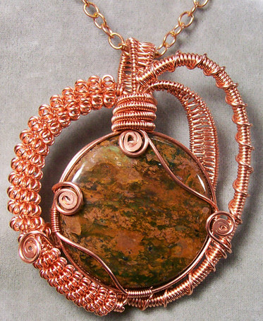 Ah, the love of my artistic life finally comes to view: WIRE WRAPPING!!!What you see here are (circling from top left):