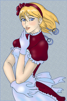 wygląda uroczo Strasznie podoba mi się jak narysowałaś jej twarz - jest słodka i ma taki piękny uśmiech No i jej ubrania, są świetnie narysowane