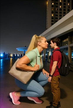 tizio42 - A very tall thin woman towers a tiny man 4 [🤖]