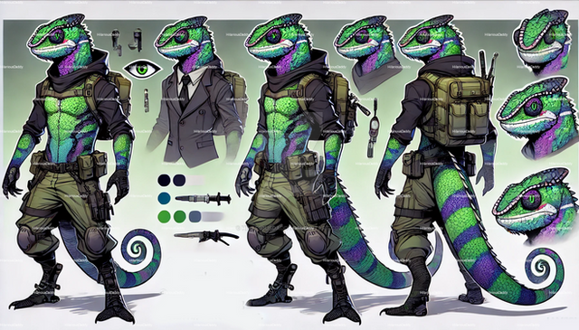 #characterdesign #adoptable #adoptablesopen #referencesheet #humanoid #sale #reptile #lizard #ai #furry #furryart #furryai #geckofurry #art