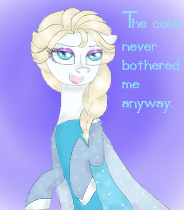 Most people doing this made her coat blue, the blue of her dress, but if you do that, then you cannot draw dress(and make it look good), so I eventually decided to leave it white, even though I was afraid there would not be enough contrast with the mane. Almost made her pink. And a horn wouldn't make sense, because of the snow and ice stuff....