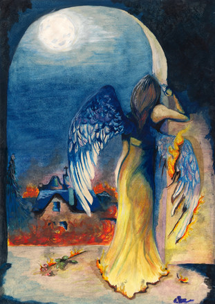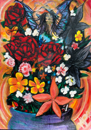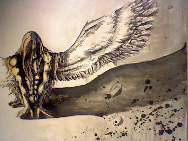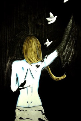 Sometimes we have no choice in a matter of losing someone or something we care about, at times what we lose is ourself, which can be just as painful and devastating. It is one of the most excruciating processes to shed ones skin, to grow and move forward from an old life, old habits or patterns but that's the only way we can evolve. That is what this artwork represents, the wings in bloodred speaks of the pain in letting go.