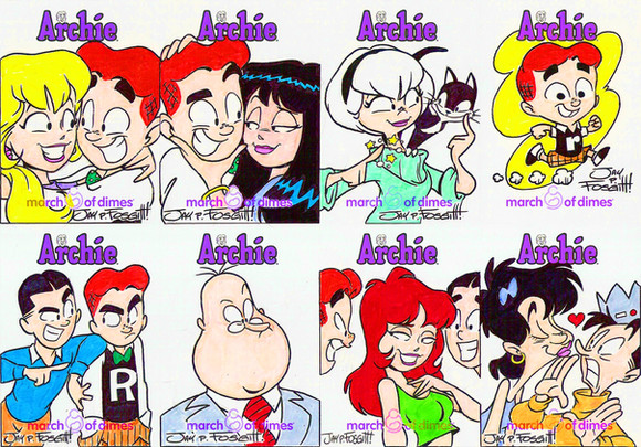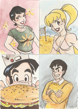 I am finally allowed to post the Archie cards, so here they are in all their glory!Row 1: Hot Dog and Salem; Veronica and mirror; Sabrina old style and Sabrina Anime stlye; Josie