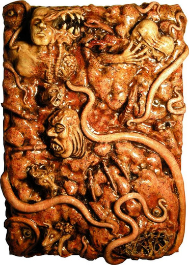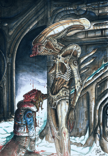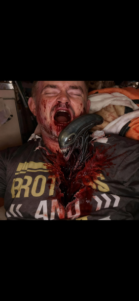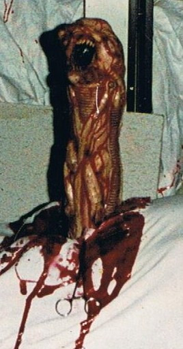 1/1 shop dummy with vinyl Halcyon Chestburster added.Hair is resin coated fake fur and the resin secretions are flame damaged celaphane (you know the trick with an aerosol and a match)