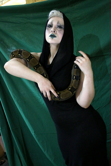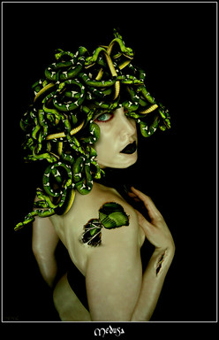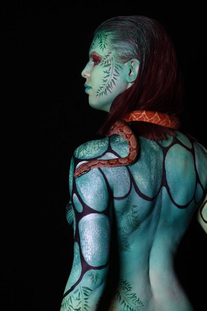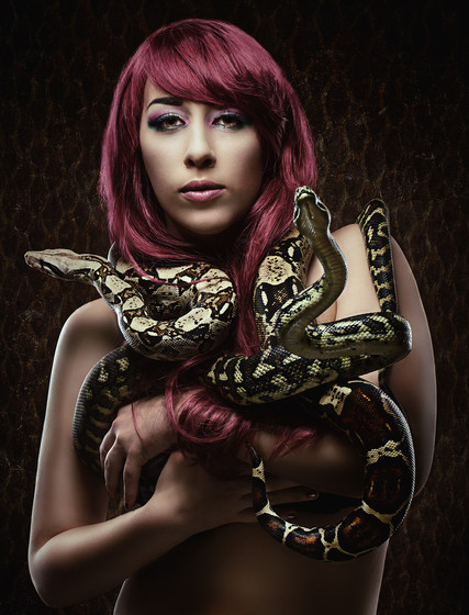 Wow, I love this! I like the two tone colors and the combination of the model's curves and the curves of the snake. Lovely