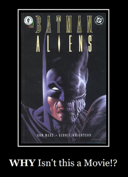 Based on the graphic novel of the same name, my concept would take place months after the events of the upcoming, "The Dark Knight Rises". A peace keeping organization is on an expedition in Guatemala to research new energy saving methods from the natural world around them. Along their journey they find a crashed space ship full of eggs. The men are attacked by face huggers and unknowingly implanted with eggs in their bodies. The crew sets sail for Gotham City, but the ship stops in the Atlantic about 10 miles off the coast and is pulled in by the Coast Guard. The military dock the ship in Gotham and scout the ship for any survivors. Soon enough, the men are attacked by alien Xenomorphs and they escape the ship and roam Gotham.Six months earlier, Batman defeated Bane and freed the city of Gotham from yet another villain. However, now he must deal with an even bigger threat...an alien threat. Batman must battle these alien Xenomorphs and save Gotham from what could eventually lead to an infestation.